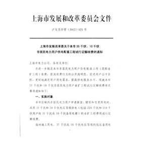 上海市多回路供电容量费和临时用电接电容量费收取标准