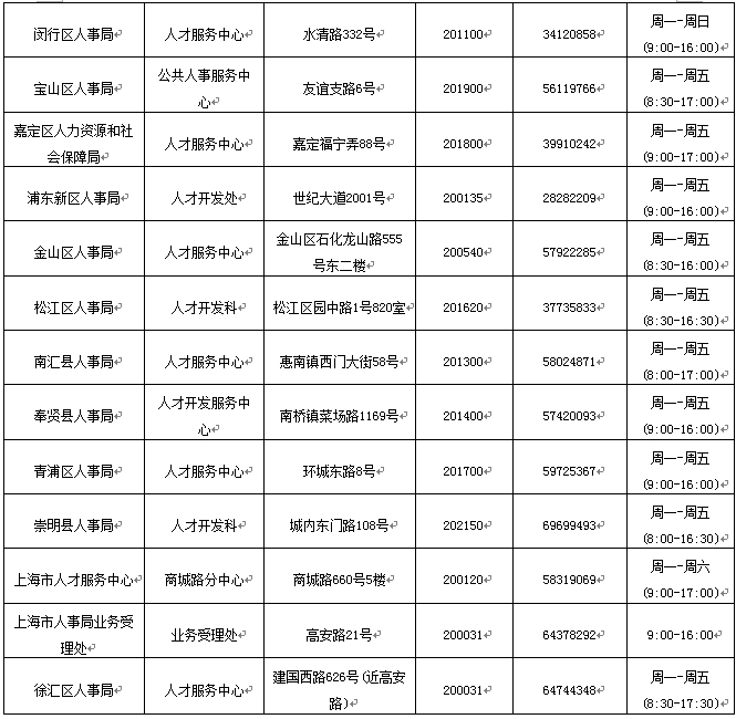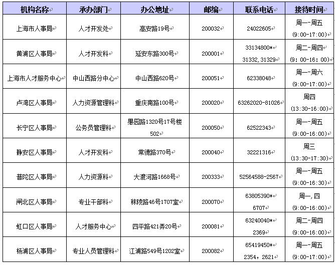 (3) 上海市各区县人事局委托受理机构